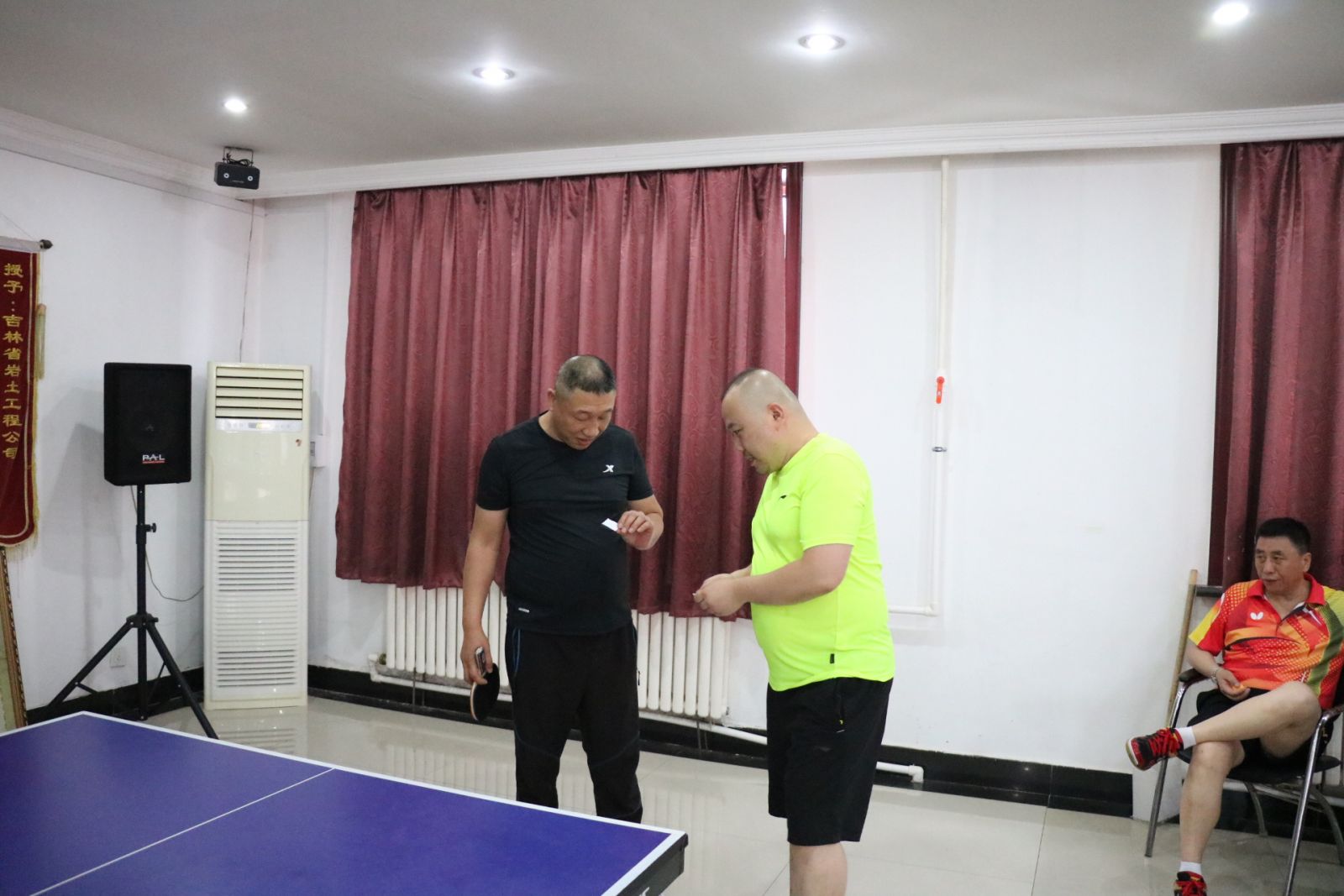 本次比賽以團(tuán)體分組對(duì)抗的形式展開,在綜合考慮人數(shù)、運(yùn)動(dòng)水平等因素的基礎(chǔ)上,分成基礎(chǔ)公司代表隊(duì)和巖土工程公司代表隊(duì),開賽前采取現(xiàn)場抽簽的方式確定了選手循環(huán)單打的比賽順序。